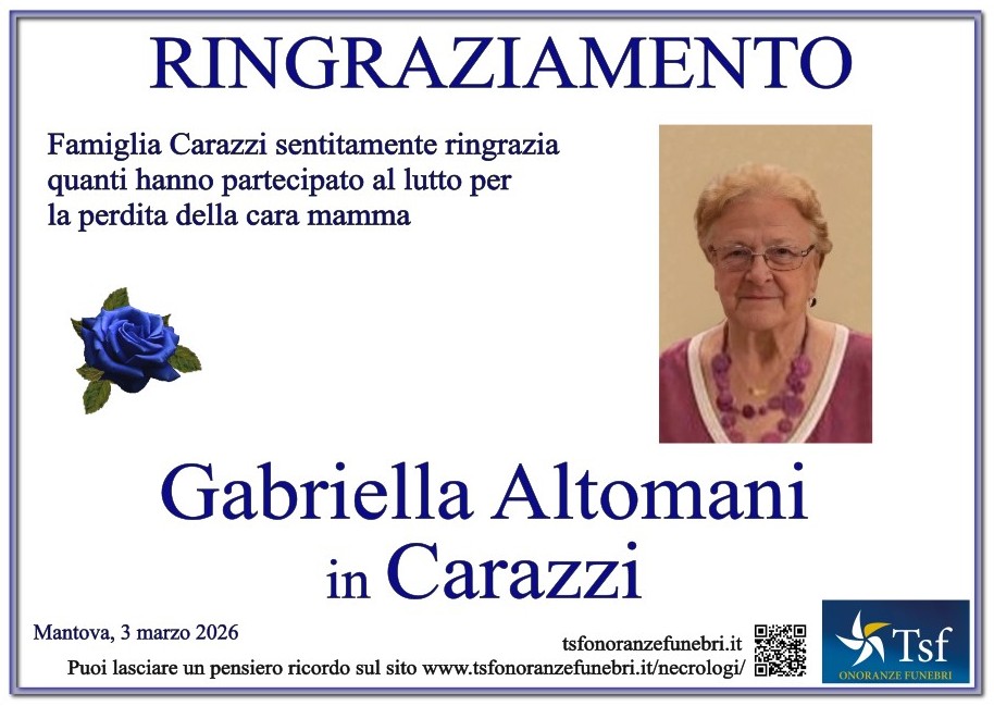 Famiglia Carazzi sentitamente ringrazia quanti hanno partecipato al lutto per la perdita della cara mamma Gabriella
