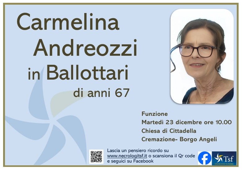 Sentite condoglianze alla famiglia Ballottari per la perdita della cara Carmela Andreozzi dalla famiglia Loffredo Pacilio
