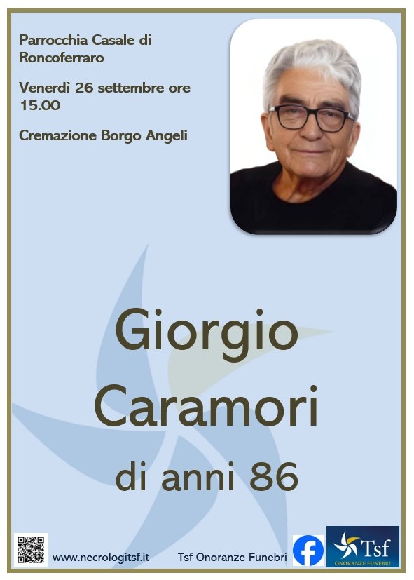 I Funerali si svolgeranno venerdì 26 settembre partendo alle ore 14.30 dalla Casa Funeraria Domus Mantova di Levata di Curtatone, per la funzione che si celebrerà presso la Chiesa di Casale di Roncoferraro