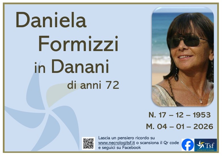 Ne danno il triste annuncio, a funerali avvenuti per volontà di Daniela, il marito Giorgio, i figli Laura e Andrea con Federica, i nipoti Alessia, Alessandro e Leonardo